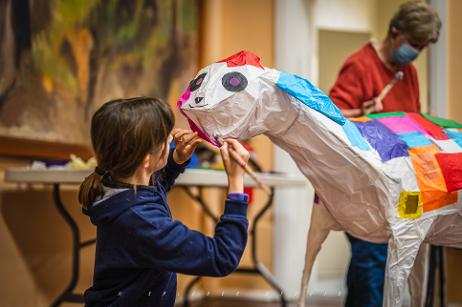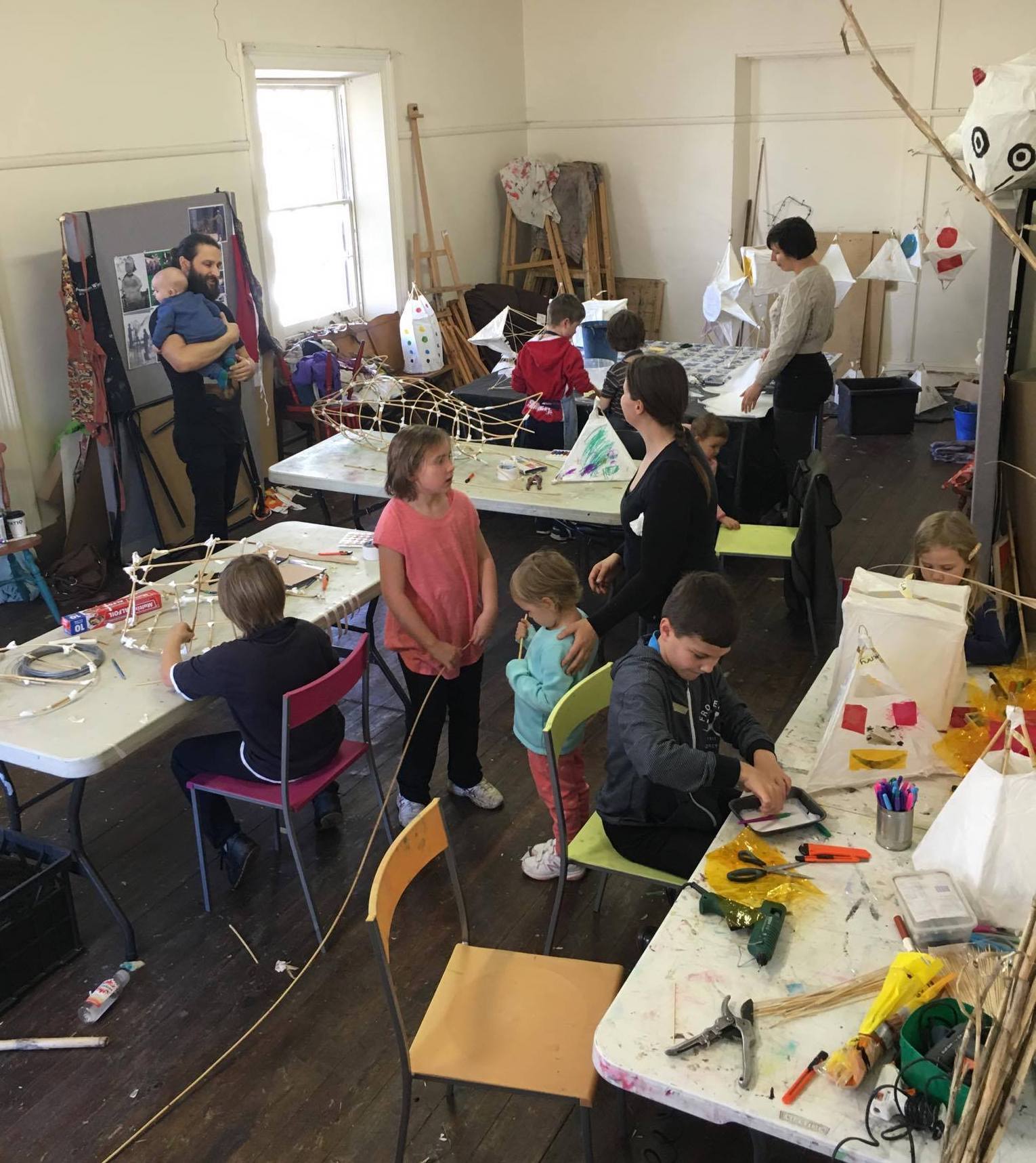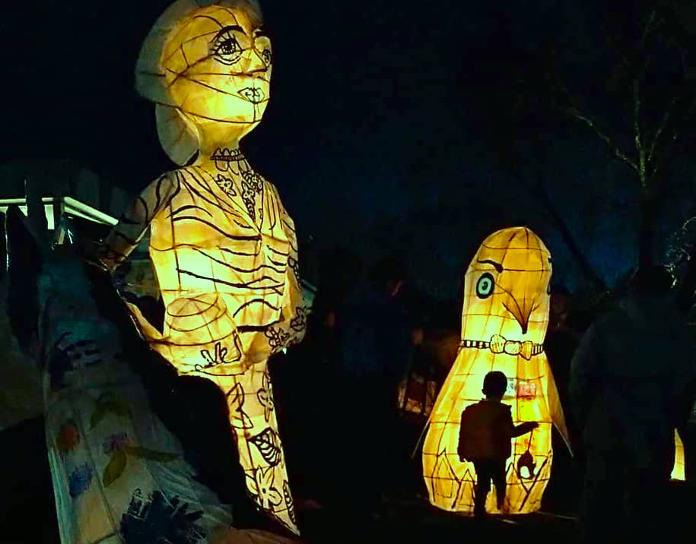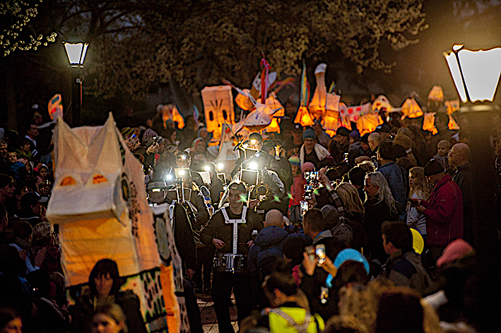 community arts workshops, lantern technique, parades, music and fire as