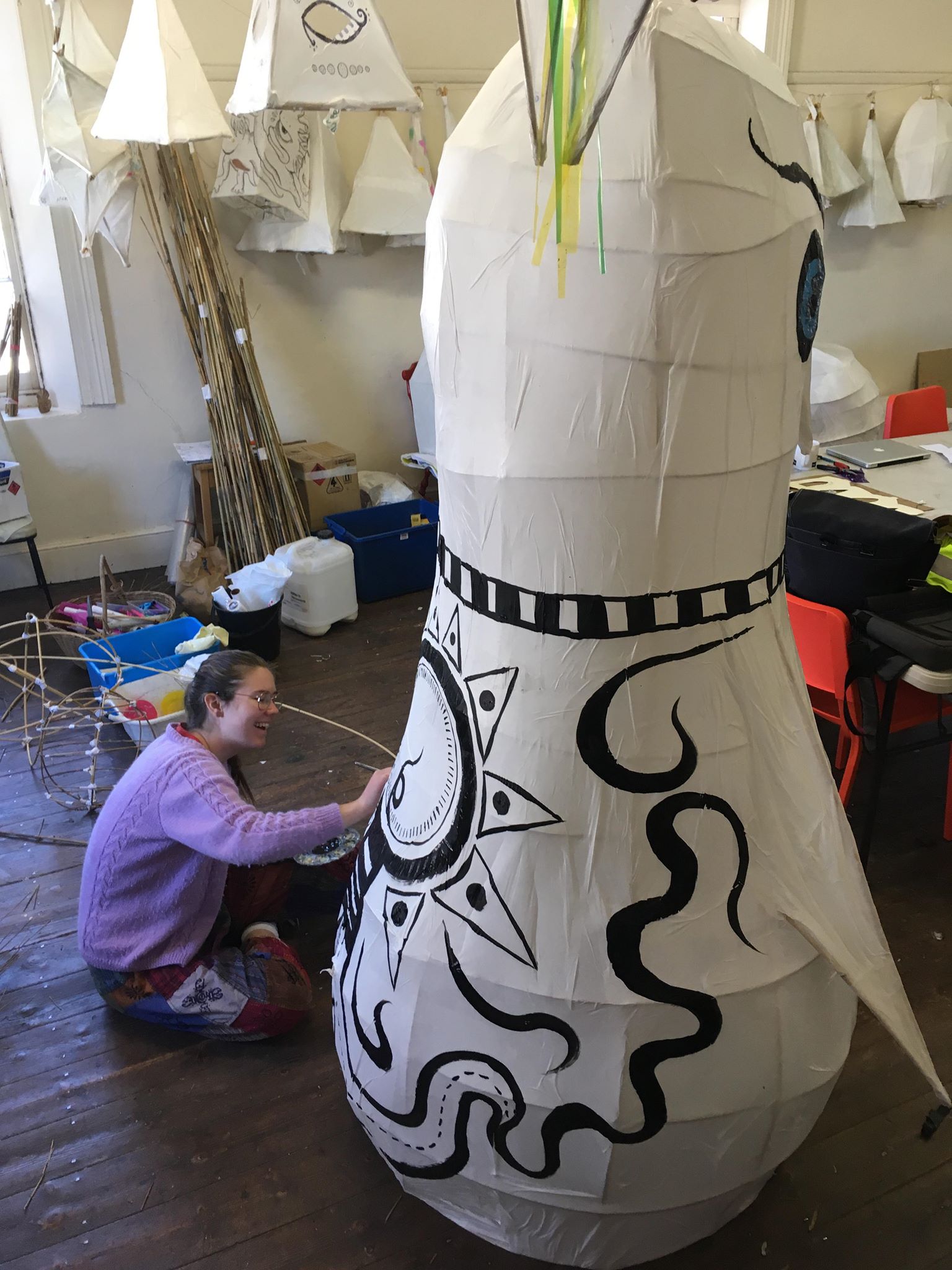 In the hwlf practice all lanterns are made from local responsibly curated, harvested willow withies, paper tape and candles only ( no LEDS).